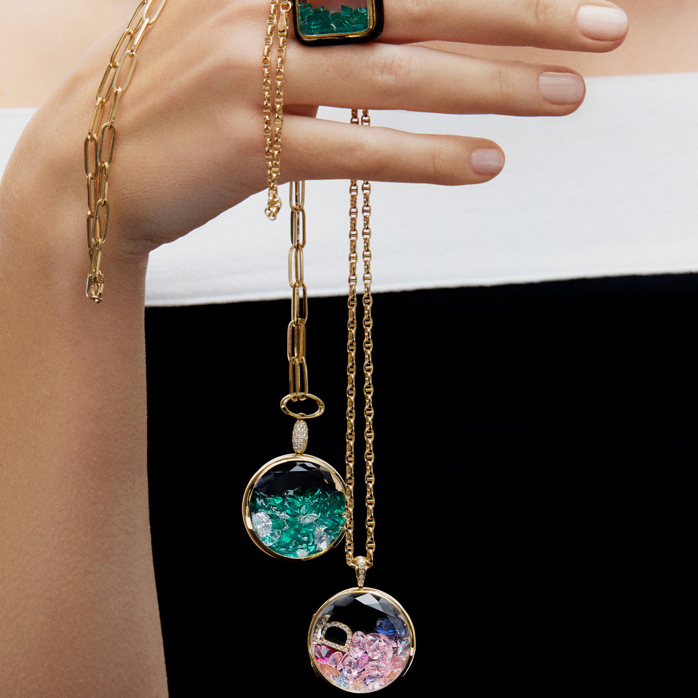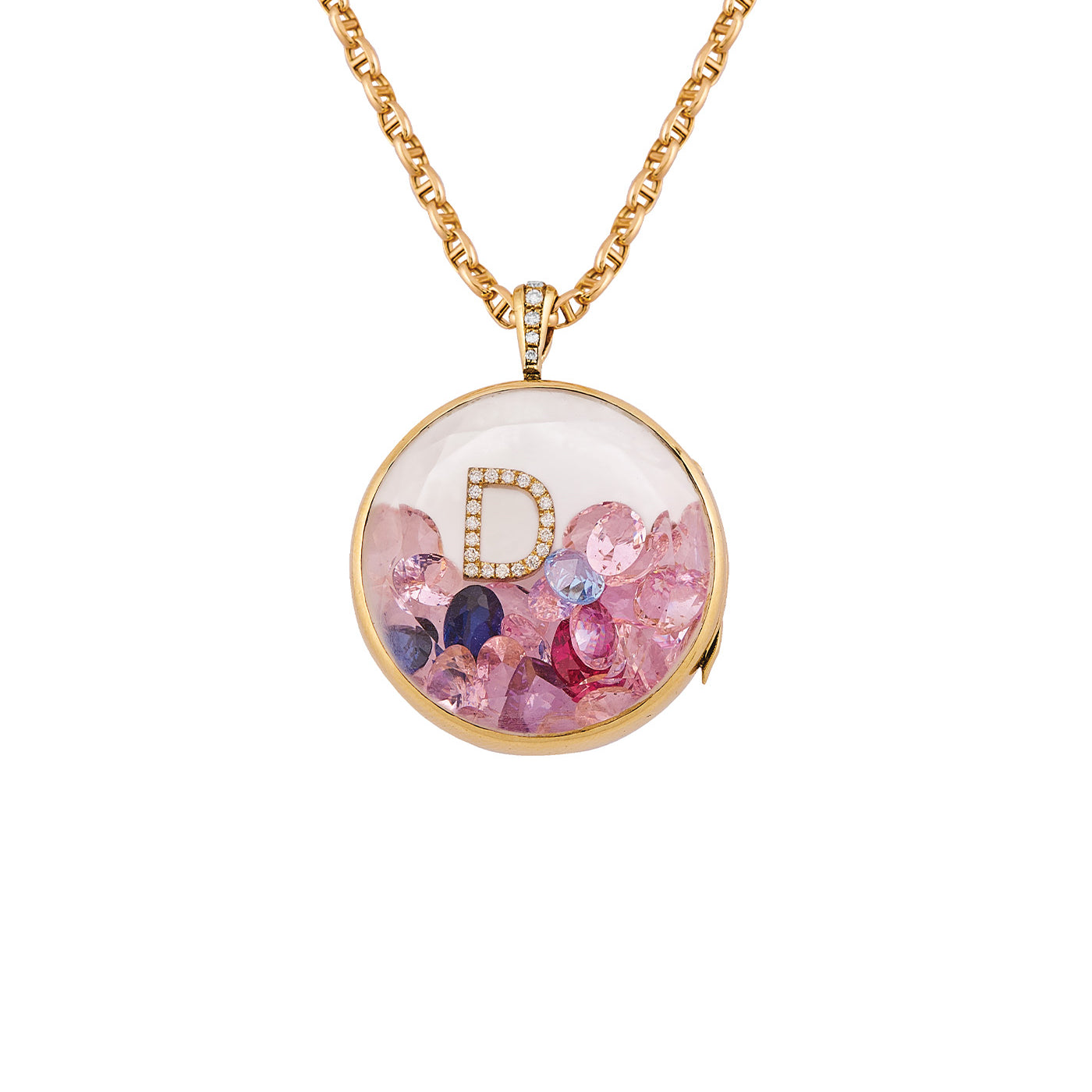 Round Medallion Necklace with Diamond Letter with Pink Crystals