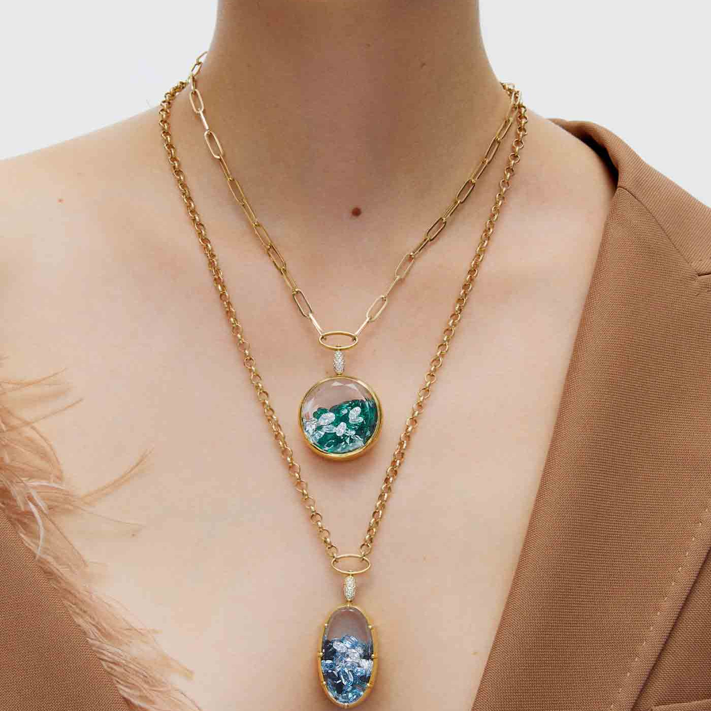 Pebble Necklace - Aquamarine & Blue Sapphire