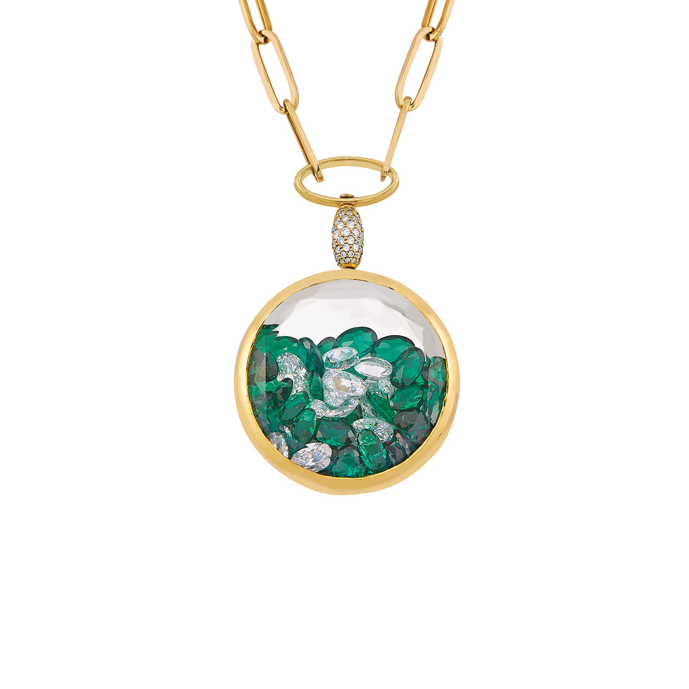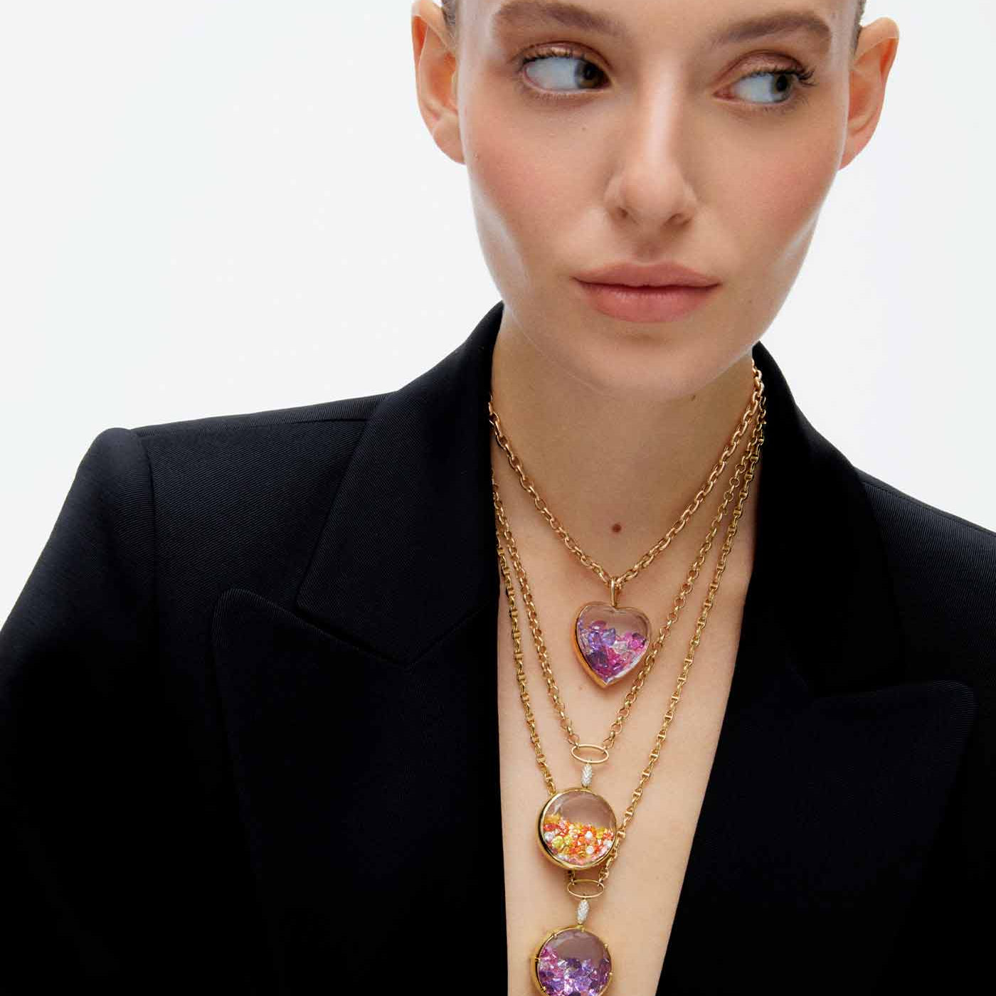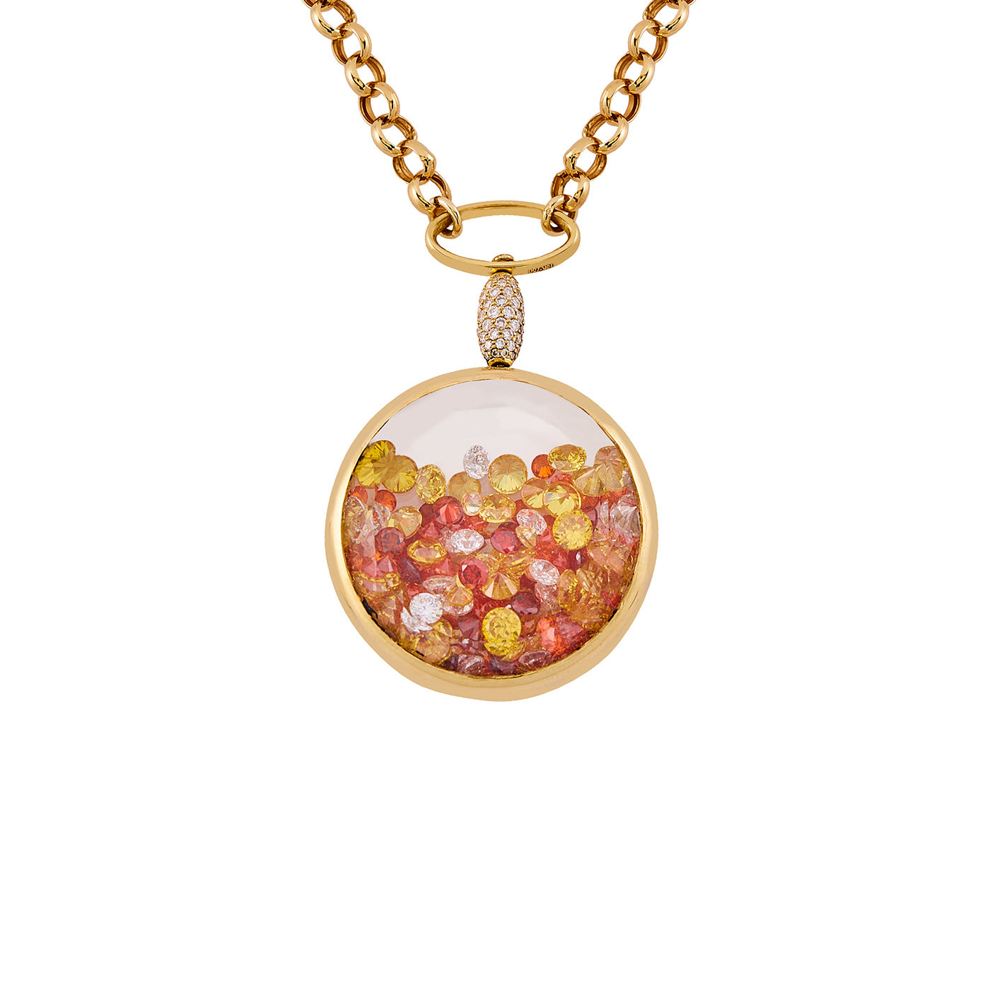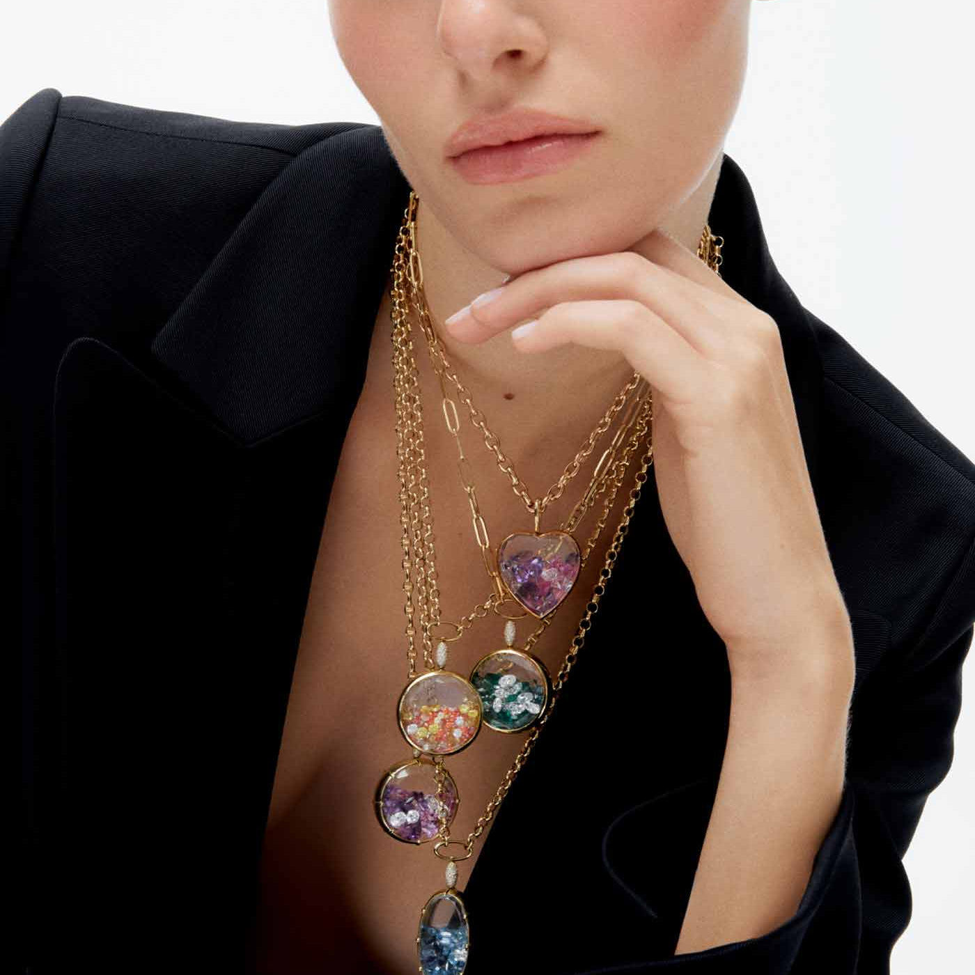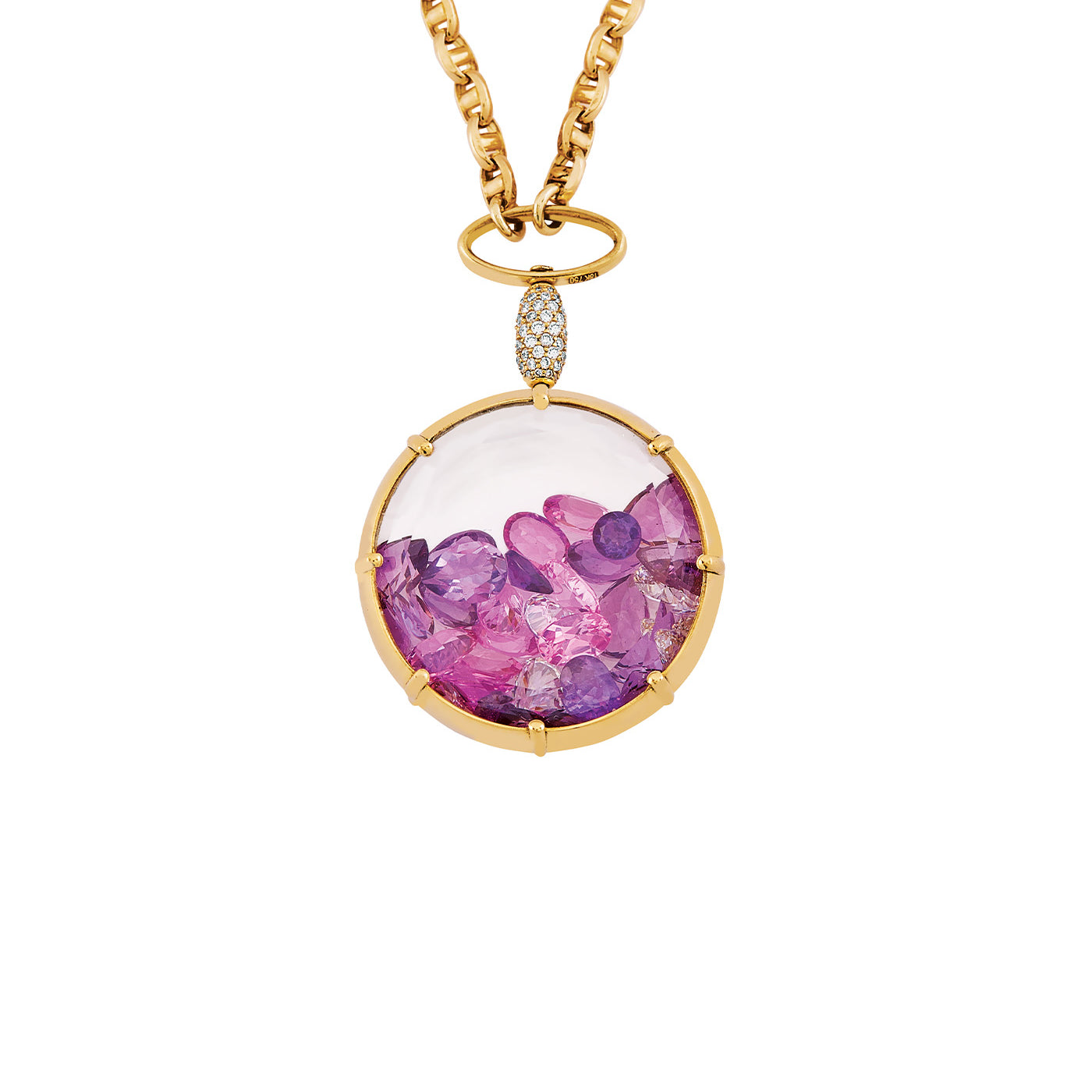 Round Medallion Necklace with Pink and Purple Crystals ( with Claw Detail)
