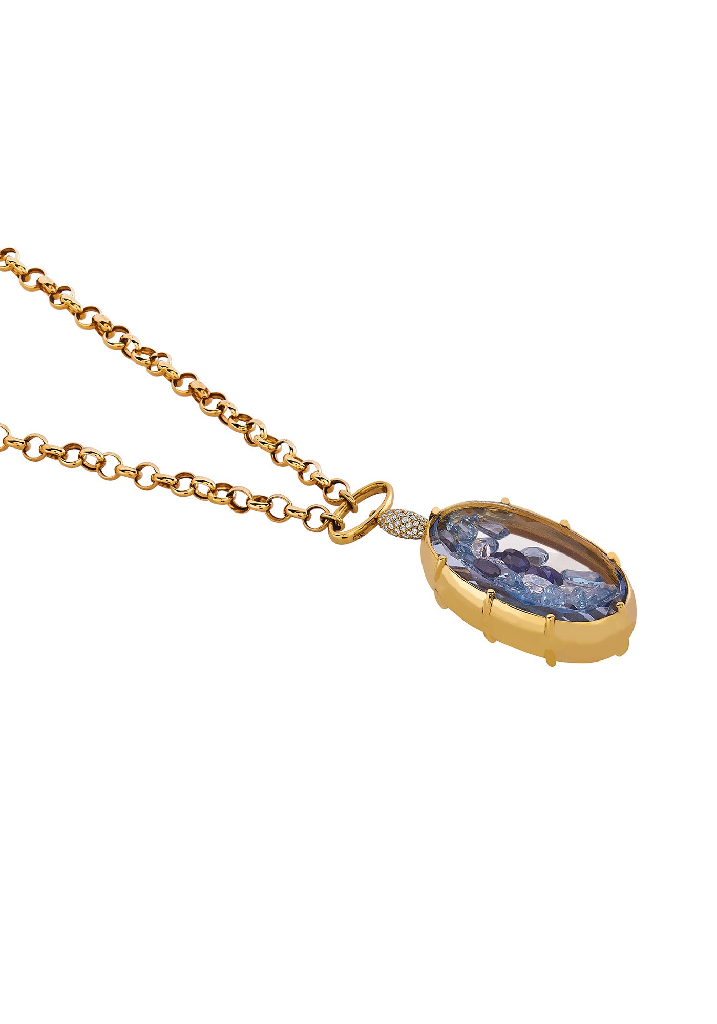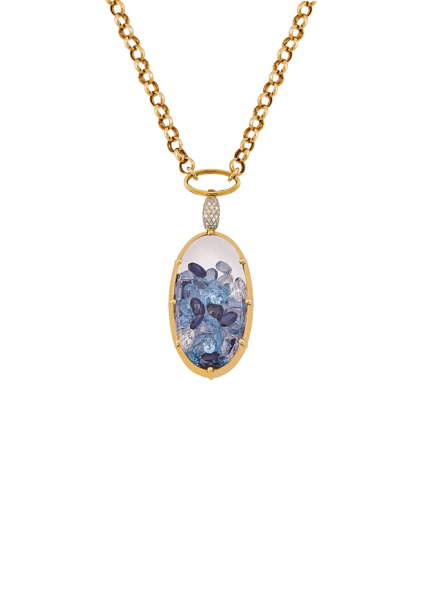 Oval Medallion Necklace with Blue Crystals ( with Claw detail)