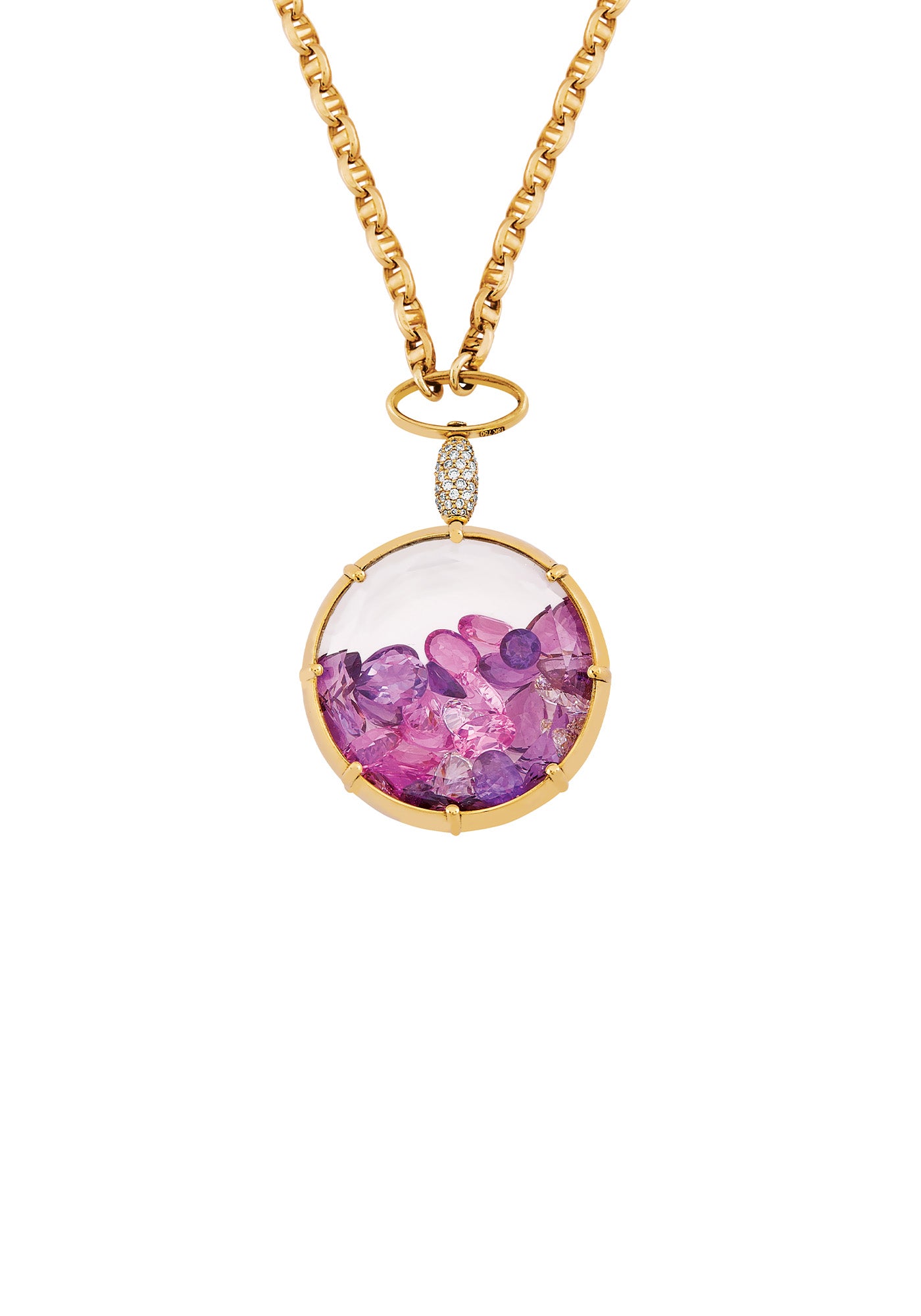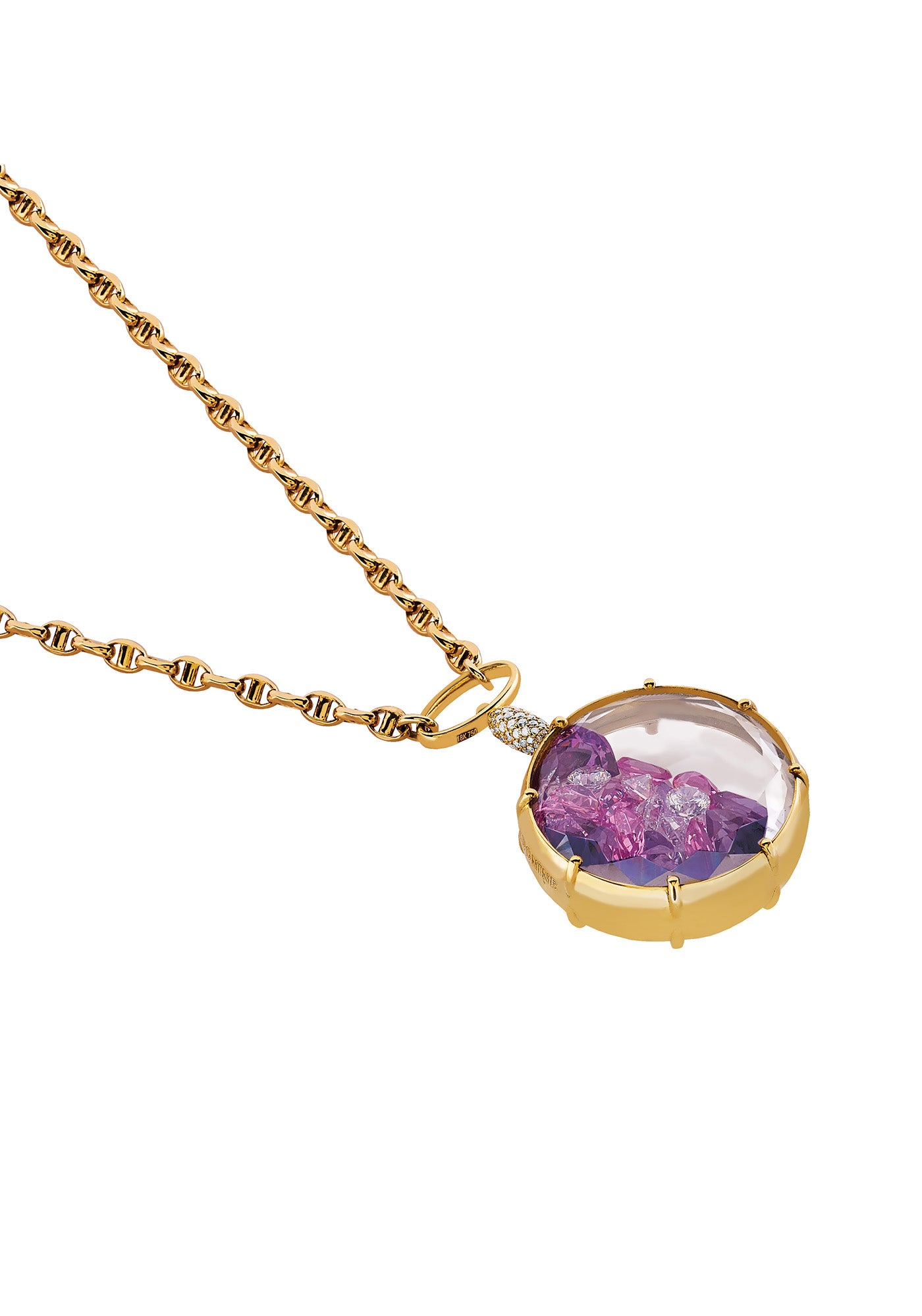 Round Medallion Necklace with Pink and Purple Crystals ( with Claw Detail)