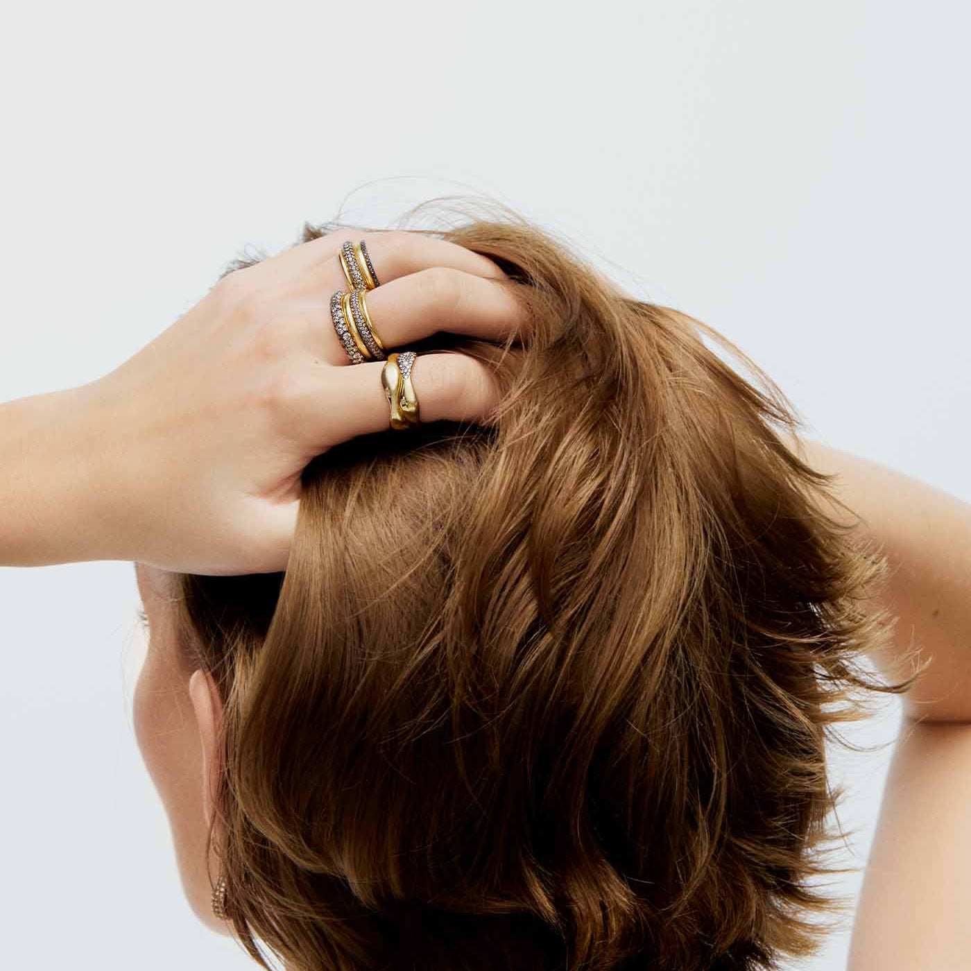 Beyaz & Şampanya Pırlantalı Dalga Yüzük