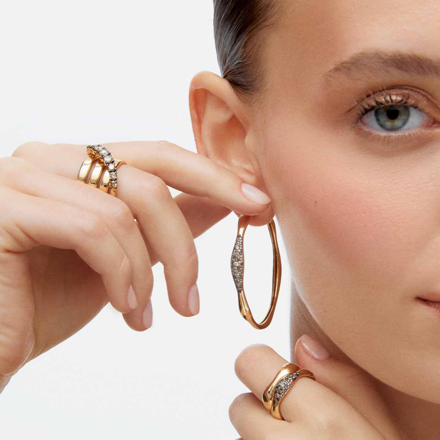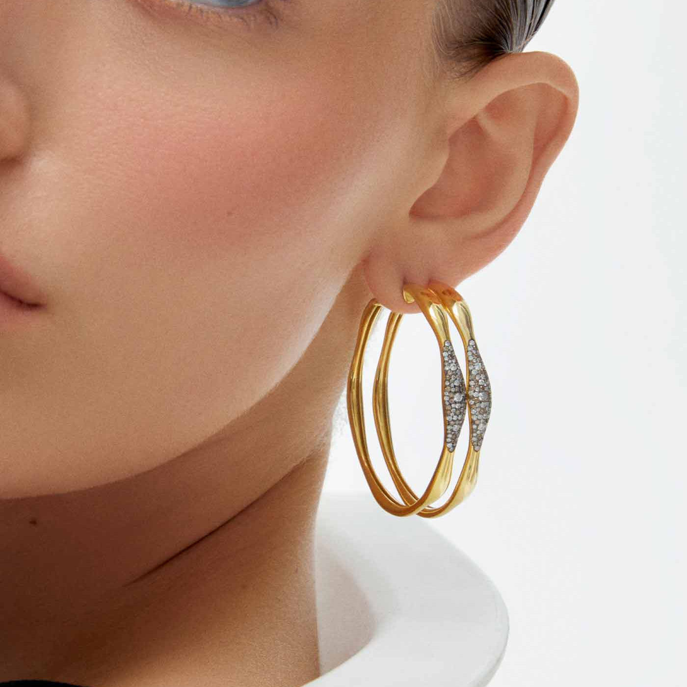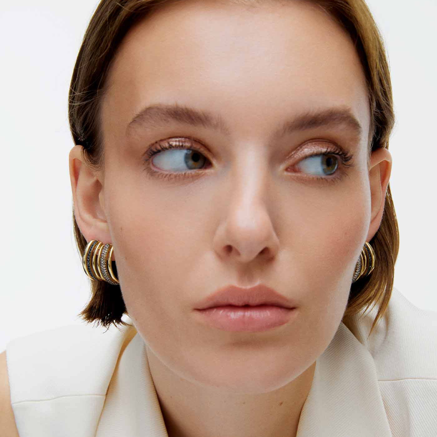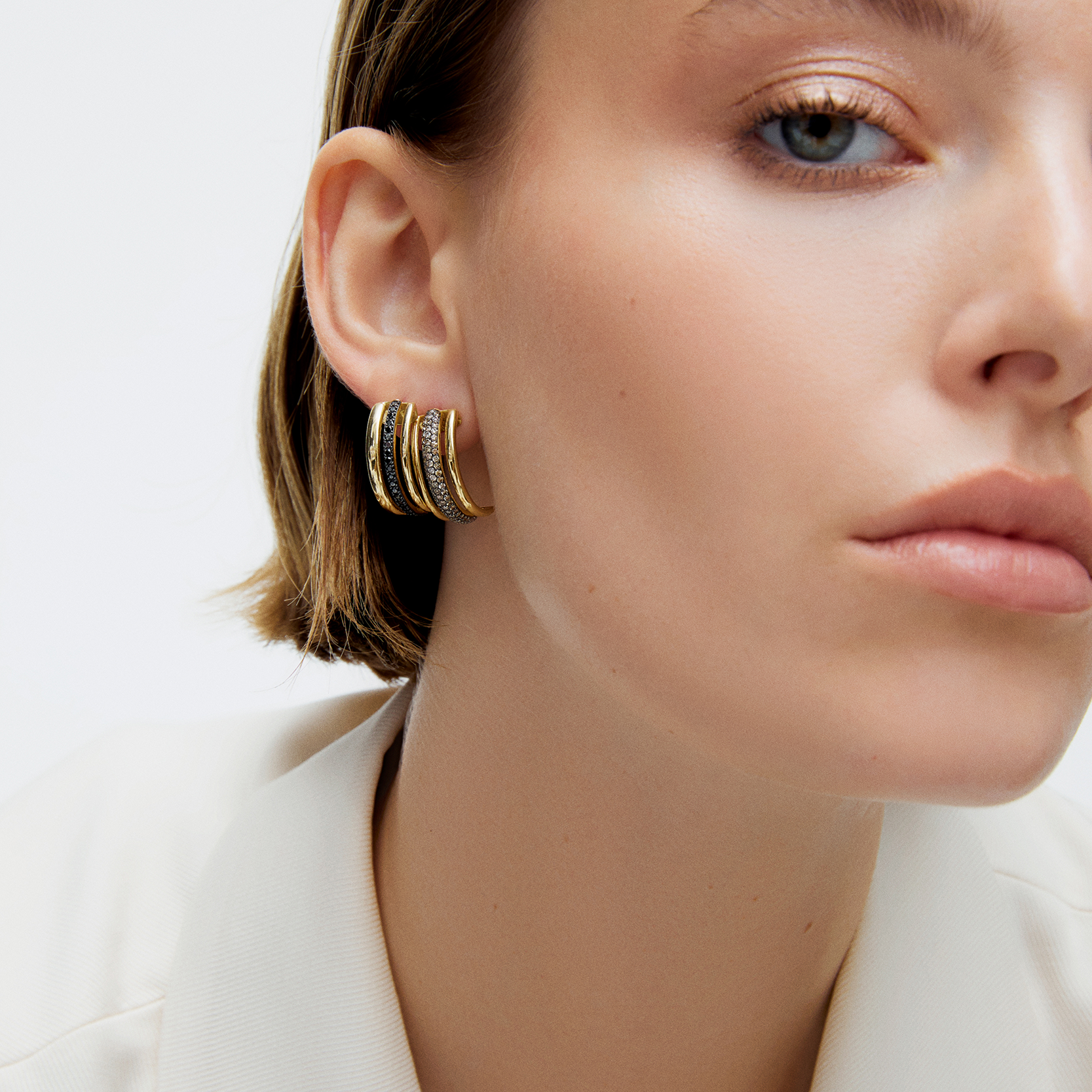Beyaz & Şampanya Pırlantalı Dalga Küpe