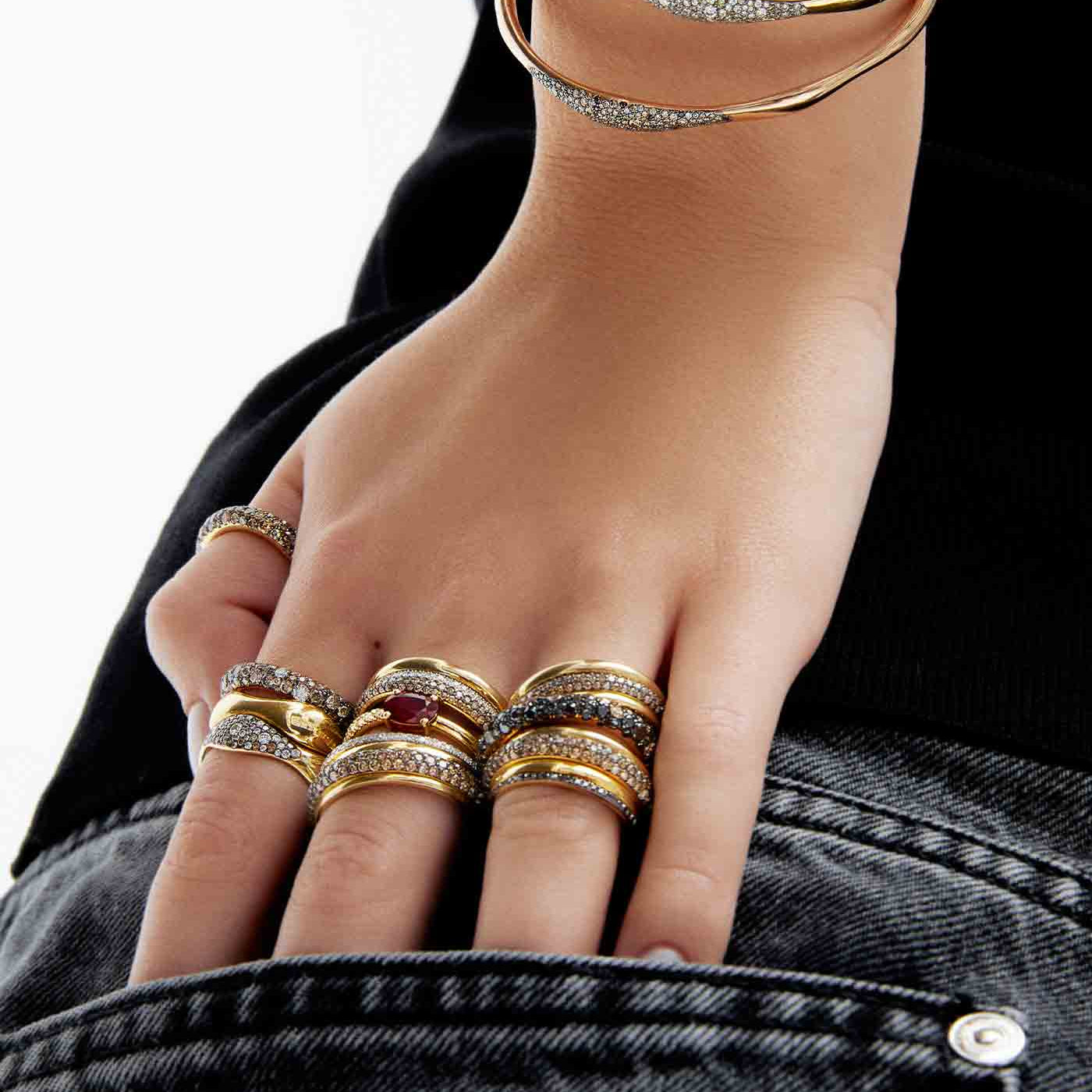 Siyah & Şampanya Pırlantalı Dalga Yüzük