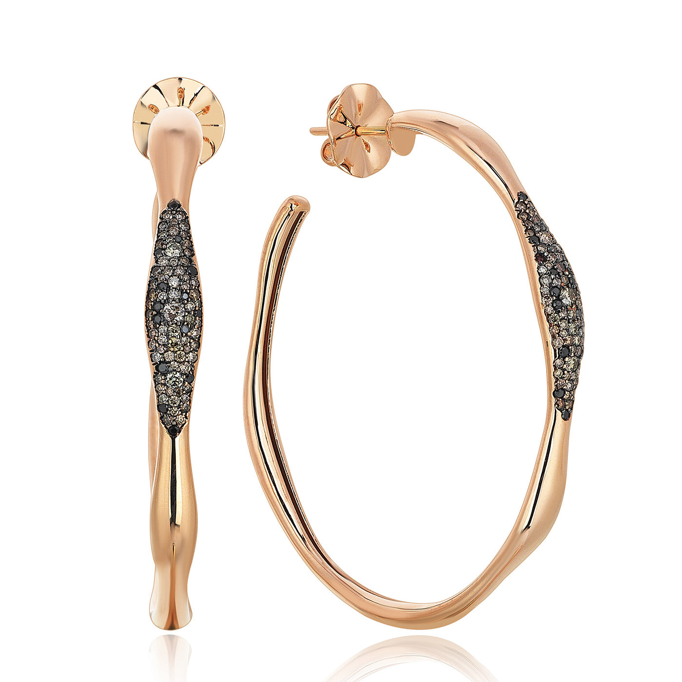 Siyah & Şampanya Pırlantalı Dalga Küpe