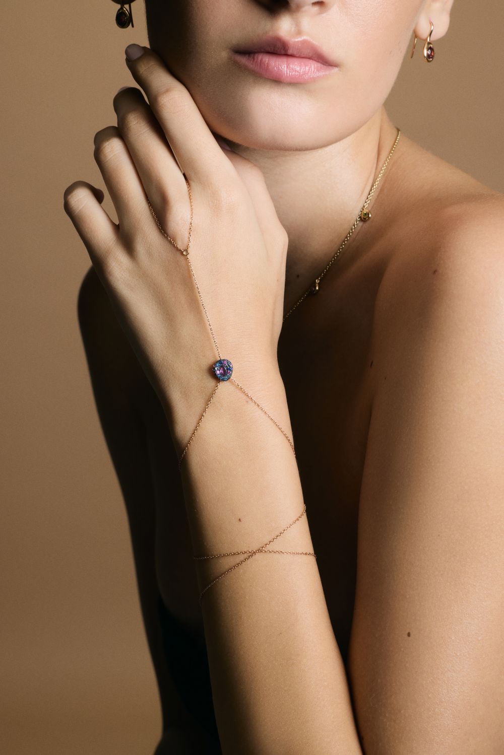 4,66 gr. 18K Rose Gold, Amethyst 0.17 ct., Diamond 0.2 ct., Pink Sapphire 0.6 ct.